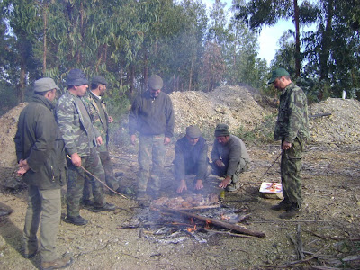 Como está bastante vento e frio de rachar a caçada apresenta-se díficil para caçadores e cães que se cansam mais depressa, dá-se mais uma volta e começa-se a pensar no almoço que vão sendo horas.