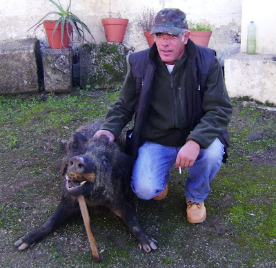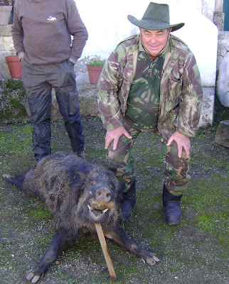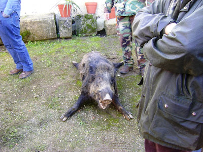 O balanço final ficou abaixo das espectativas quanto ao número de reses cobradas, foi somente abatido um bom macareno que nem por isso deu trabalho aos cães, direi mesmo que os cães a única coisa que fizeram ao porco foi chateá-lo ao ponto de o fazer sair do seu encame levando-o a ser morto numa das portas, mas não sem ter houvido uma boa meia dúzia de tiros que lhe passaram ao lado, talvez os monteiros estivessem distraidos ou não contassem que o porco viesse tão devagar,