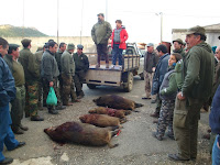 Ainda assim compareceram na junta de carnes quatro javalis sendo dois deles de bom tamanho, todos fêmeas, o que leva a que se possam tirar algumas elações a respeito de fazer montarias tão tarde no calendário venatório pois o que se verifica é que as varas são compostas no essencial por juvenis e fêmeas quase todas prenhas, estando os grande machos já fora da época do cio, recolhem-se nos matões e é muito difícil aparecer algum às portas.