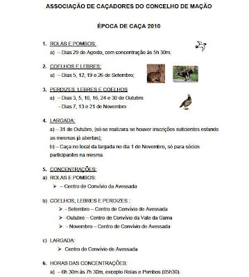 Inicio da temporada de caça 22 Agosto de 2010.