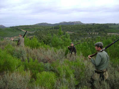Cães no terreno, uma grande algazarra com cães a pegarem nos “coelhos pretos” e a fugirem para fora da mancha, o grupo das perdizes a embaraçar-se com os “coelhos pretos” , e o grupo das esperas a falhar com os objectivos fixados, enfim tudo ao contrário.