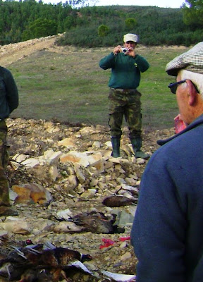 Os lançadores da caça, começaram o seu trabalho muito envergonhados, pois ou seria do frio ou estavam com medo de serem picados pelas perdizes ou pelos faisões, que logo os largavam sem lhes darem um empurrãozinho que os fizesse voar com mais vontade, cedo se rectificaram as coisas e a passarada começou a voar com mais destreza. Há a condicionante do vento que continua a condicionar o voo das aves, como é normal, os genes e a natureza são mestres, e ainda bem que não conseguimos transformar por completo tudo em que tocamos.