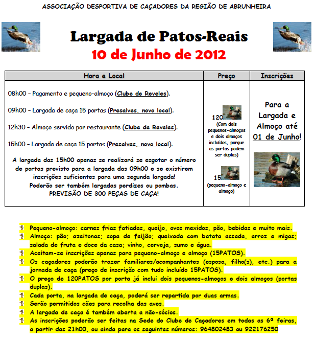 Haverá uma largada de patos inserida no programa da feira a realizar no dia 10 de Junho.