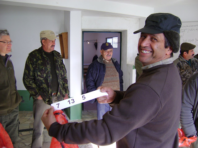 Mas o dia foi bem passado e no final após a contagem das peças e da apresentação do tableau de chasse, foi tirada a foto de grupo e na distribuição da caça, calhou a cada caçador quatro perdizes e dois faisões, uma média de 60 % da caça.