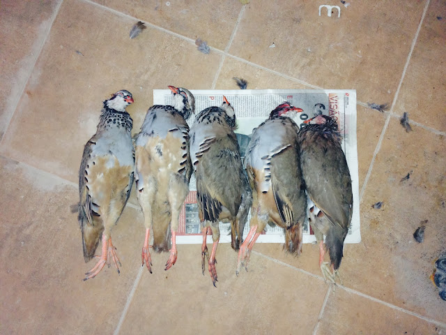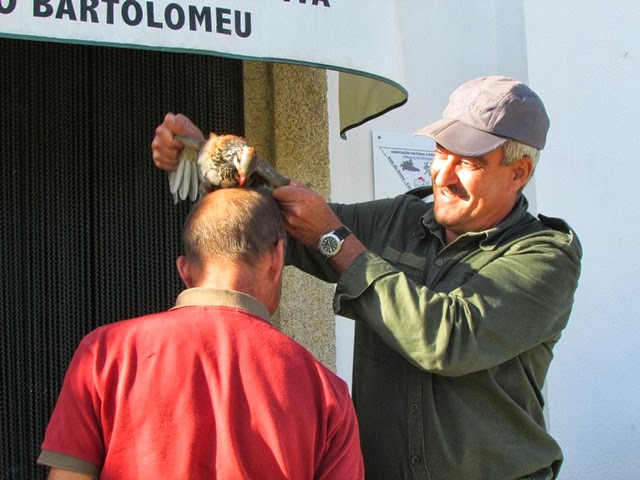 Seriam este batedores especializados que assustaram de tal modo as perdizes, que a sua velocidade de arranque aumentou exponencialmente tendo uma delas , para além de derrubar o chapéu do LA, ter sido brindada com uma salva de “pregos” que acabariam apenas por assustar o amigo Cristo que por ali andava nos seus afazeres . Desculpas pedidas pelo susto e imediatamente alguém propôs, por entre um pé de esteva e uma irredutível balsa persistente, que as multas continuassem a ser grades mas…das médias, sempre se poupava na mão de obra.