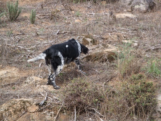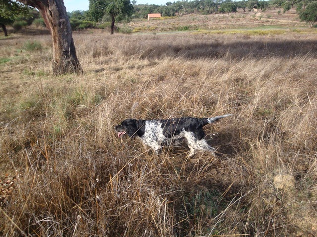 Furam-se as balsas, homens e cães são brindados pela autodefesa do silvado que lhes regista na pele a ousadia de se infiltrarem nos seus domínios. Da perdiz, manjar demasiado precioso para ficar por ali à mercê de uma qualquer raposinha esfomeada, nem sinal. Aproximamo-nos e o “chefe”, do outro lado do ribeiro, exclama: “ Zé, traz aí a Kuka”. A breton, que não volta as costas ao serviço, toma ares, dá sinal da vermelhinha, interna-se no silvado e, depois de duas voltas ao “circuito espinhoso”, aparece com a bicha na boca entregando-a ao seu tratador e recebendo, como é da praxe, os carinhos devidos pelo seu esforçado desempenho.