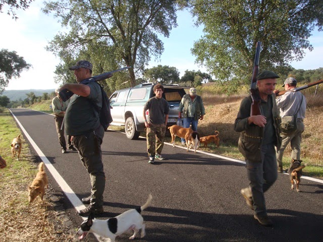 A bom ritmo por montes, vales, plantações de eucaliptos e um ou outro olival disperso, continua a caminhada com os cães dando boas indicações da presença recente das vermelhinhas, mas estas, com o saber acumulado de gerações, esquivam-se facilmente não permitindo sequer que as vislumbremos mesmo à distância. Acumulam-se os passos, ouvem-se dois tiros, avista-se uma perdiz, cobra-se uma outra, que mestre Jorge fez aterrar de emergência e que em desenfreada correria procura furtar-se ao nariz apurado do perdigueiro. Esgota-se o tempo, acumula-se o cansaço e instala-se a descrença no retorno ao ponto de partida. Mais a sul, o grupo dos coelhos, solidário com os agricultores locais, procura incessantemente remover um enorme balsedo onde uma vermelhinha, distraída, tombou vítima de um “colapso” fulminante.