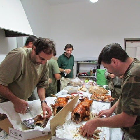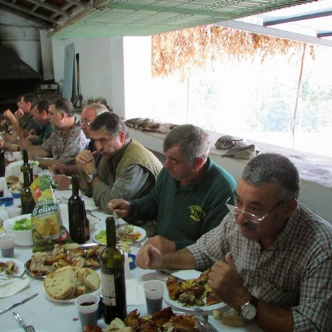 Mais um dia de caça ás perdizes na ACCM. Desta vez tivemos a companhia duns companheiros de Arzila. O Zé Branco, o Valdemar, o Victor, o Miguel e o Elias, acompanhados dum colega de há já 25 anos que infelizmente deixou as lides da caça, mas vai falando com eles, o amigo José Seiça. Foi um dia bem passado no campo na companhia dos nossos amigos de quatro patas, e com umas lebres e perdizes á mistura. Nada como no ano passado, mas deu para dar o gosto ao dedo e para se passarem uns bocados bem bons. O almoço de leitão (estava muito bom) foi gentilmente oferecido por estes novos amigos e desde já e em nome de todos o nosso obrigado. Ficaram também desde esse dia convidados para virem ter connosco no dia 30 para mais um convívio. Esperamos pela visita nesse dia, até lá boas caçadas e ficam as fotos do almoço.