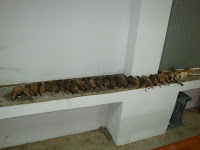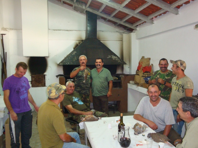 Regressados ao centro de convívio, tivemos umas minis fresquinhas que nos refrescaram, enquanto descansadamente aguardávamos pelo almoço que se seguiu. Como vem sendo um hábito entre o nosso pessoal, o dia foi de leitão assado, que mais uma vez estava muito bom, acompanhado por um vinho frisante, muito fresquinho, que acompanhou excelentemente, e que abriu o mote para uma tarde bem passada em excelente companhia e com muita camaradagem, pena é que nestes dias as horas passem sempre mais depressa e como tínhamos uma longa viagem pela frente tivemos de se fazer á estrada, com a promessa de voltar e satisfeitos pelo dia bem passado.