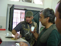 " "Neste dia calmo, luminoso e sem as habituais neblinas matinais na zona, compareci pela primeira vez, na presente época venatória, na zona de caça que me tem proporcionado alguns dos mais significativos momentos de convívio e memoráveis lances de caça. Com uma vontade inabalável, apetrechados da mais moderna tecnologia e acompanhados por canídeos de diversas “marcas” desde “ferraris” (amarelos e de tração total) a rafeiros e cruzados das melhores famílias (alguns da zona do Estoril) enfrentámos, corajosa e teimosamente, estevas, balsas e tojos que, sendo donos do pedaço, se dedicaram durante toda a manhã a escrever nas pernas dos “inocentes caçadores”, autênticos mapas de estradas inexistentes no local. A coisa até nem começou mal. O Diogo, sem saber ler nem escrever, deu o mote cobrando o primeiro “flanelas” do dia. Dizem as más-línguas que o dito aparentava claramente sinais de subnutrição deslocando-se com evidentes dificuldades. Valeu a carriça que, com pena do bicho, rapidamente o transportou entregando-o ao atirador. Esta” fartura” seria sol de pouca dura e a manhã foi decorrendo sob um sol abrasador que foi minando a vontade dos caçadores e arruinando o trabalho dos “ferraris” que, em matos densos e extremamente secos, dificilmente poderiam fazer melhor. Um latido, um ou outro tiro e a maioria dos poucos coelhos avistados seguiu paulatinamente o seu caminho refugiando-se rapidamente nos matos fortes e quase inacessíveis. A história terminaria aqui, seguindo-se para o bem merecido almoço, se não fosse um episódio pouco usual mas presenciado por diversas testemunhas. Numa última tentativa para compor o fraco quadro de caça resolvemos bater um cabeço de estevas usualmente frequentado por diversas “flanelas”. Coelhos nem vê-los, o espaço estava ocupado pelas “vermelhuscas” que, assustadas com a movimentação, voaram nas mais variadas direções observadas por alguns “gulosos” que, por força da lei mantiveram as escopetas silenciosas. Porém nem todas tiveram a mesma sorte! Uma delas, quicá nova ou mais assustadiça, ao vislumbrar um tal L. Jorge, careca por opção segundo as suas próprias palavras, assustou-se de tal maneira com o brilho do artista que esbarrou num cabo de média tensão caindo redonda a seus pés. Não restam dúvidas que o infeliz bicho ter-se-á suicidado por motivos ainda não totalmente esclarecidos suspeitando-se de fortes poderes ocultos de algum dos confrades que se encontravam nas imediações. O caso foi entregue ao Presidente que, face ao inusitado da situação, me chamou ao seu gabinete instando-me a informar todos os que não estiveram presentes desta nova modalidade de caça – Enxota para as linhas de cobre da EDP (é favor não levar o cobre porque vai fazer falta para as próximas caçadas). Seguiu-se o almoço, como sempre divinal e com mesa especial para os que não gostam de conduto de entrepernas (mais conhecido por queijo),regado com tinto local e também com uma ”pomada” de Freixo de Espada à Cinta que um tal J. Leitão nos quis dar a degustar. …………….E ainda houve bolo de mel! Boas caçadas Avessada,25/09/2011, Zeg"